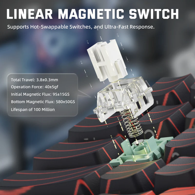 🧲 Magnetic Switch Technology – Smooth, adjustable actuation (0.1–3.4mm)