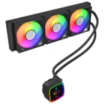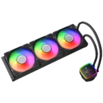 High-performance 360mm AIO water cooler with ARGB fans, aluminum radiator, wide Intel & AMD socket compatibility, and silent high-airflow cooling for gaming and professional PCs.